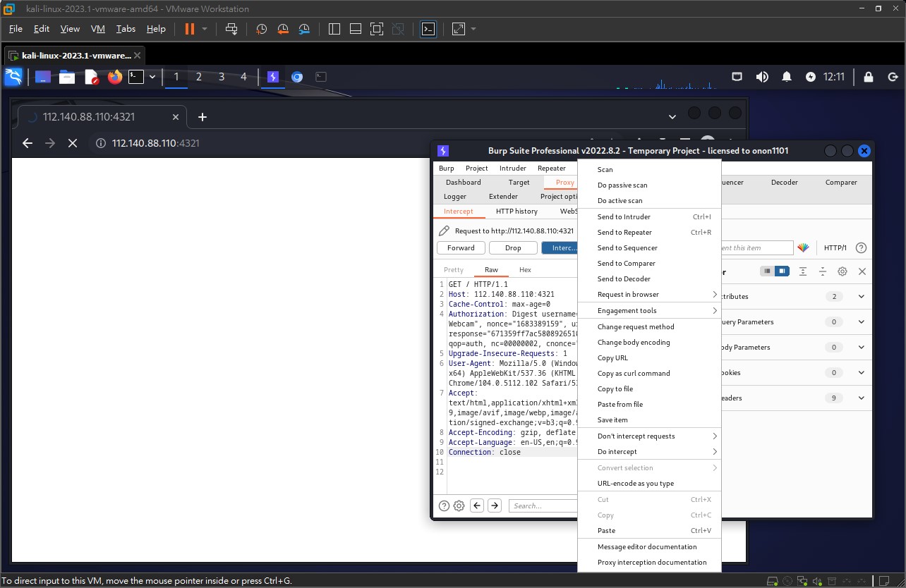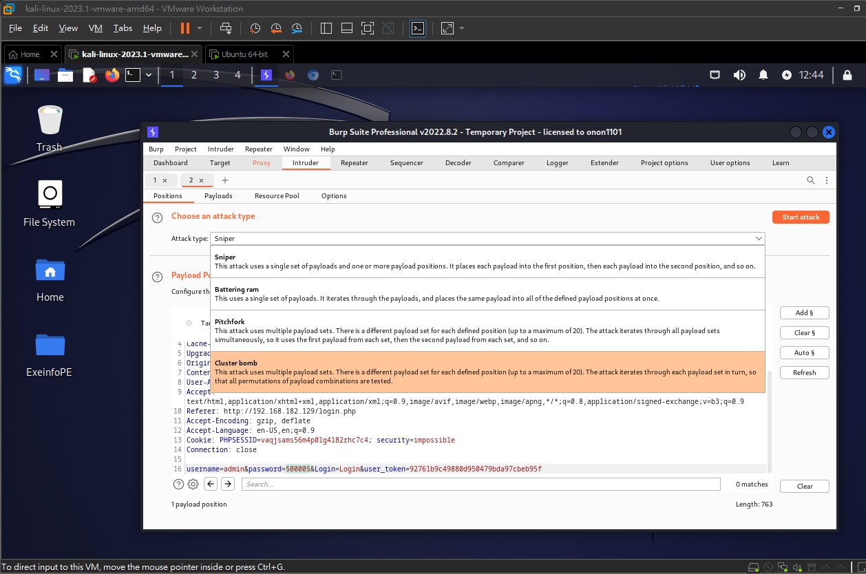 Intercept is on, 這個是監聽封包的意思。喔對了,因為教學影片裡面是真的打,而我找不到能打的機器,所以用 DVWA 架設了一個。之後有空再教學。